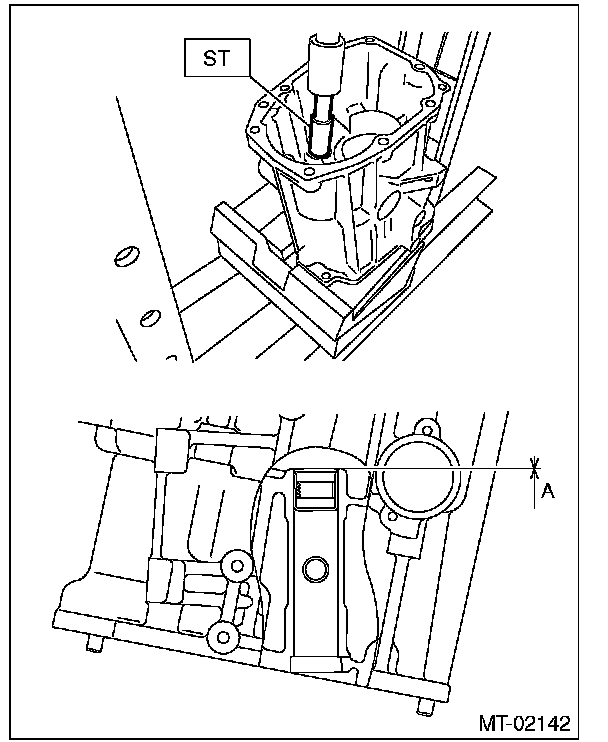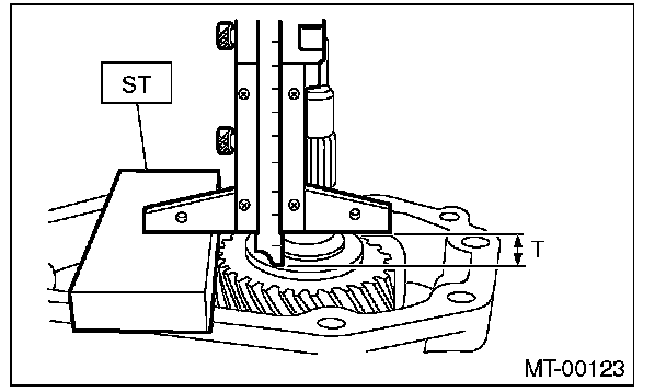 11) Measure the height "T" between the extension case and transfer drive gear.