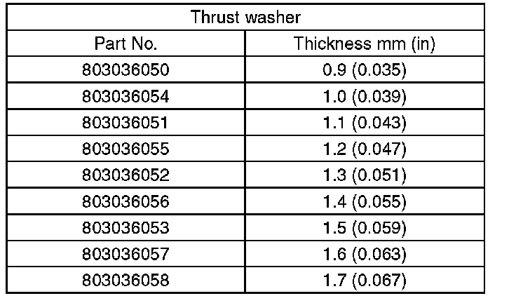 7) Calculate the thrust washer thickness "t" mm (in) using the following calculation.
