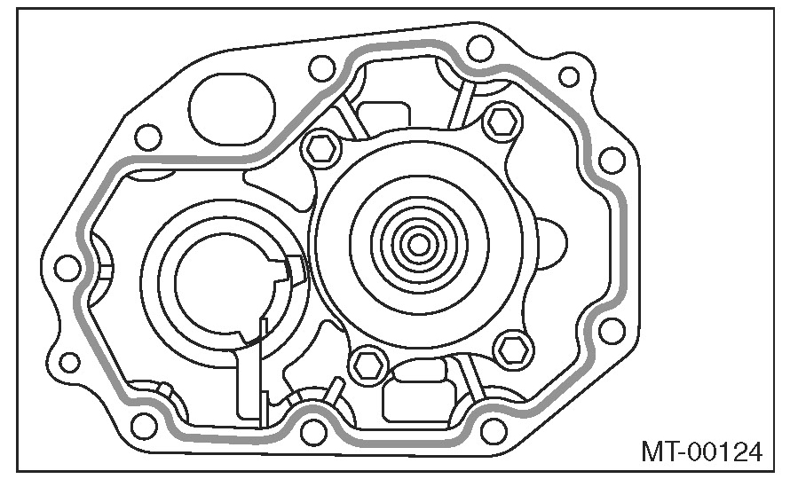 15) Apply a proper amount of liquid gasket to the transfer case mating surface.