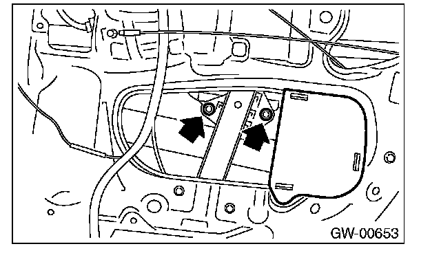 4. Operate the power window switch to move the glass, and remove the bolts.