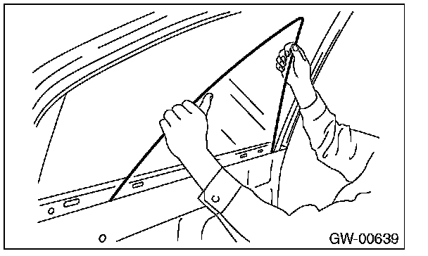 CAUTION: Make sure that the glass run rubber is placed securely in door frame and sash.