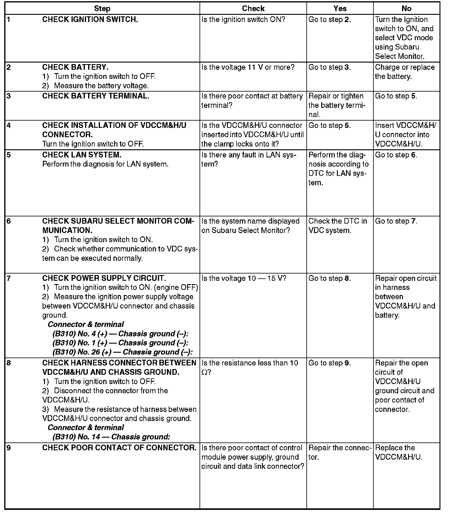 8) If VDC and Subaru Select Monitor cannot communicate, check the communication circuit.