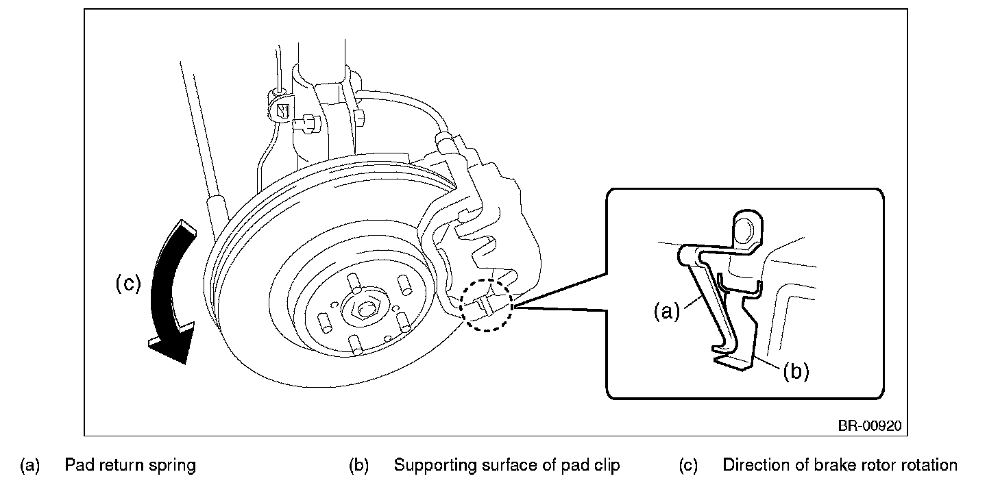 - If the pad return spring is deformed or damaged, replace the brake pad with a new part.