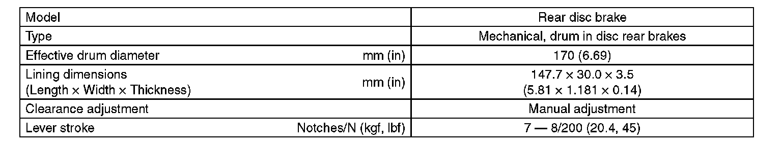Parking Brake System: Specifications