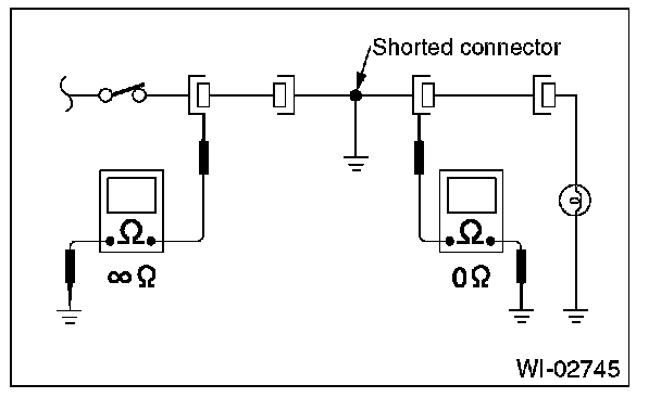 Disconnect all affected connectors, and check continuity between each connector and ground. When the ohmmeter indicates continuity between a particular connector and a ground, that connector is shorted.