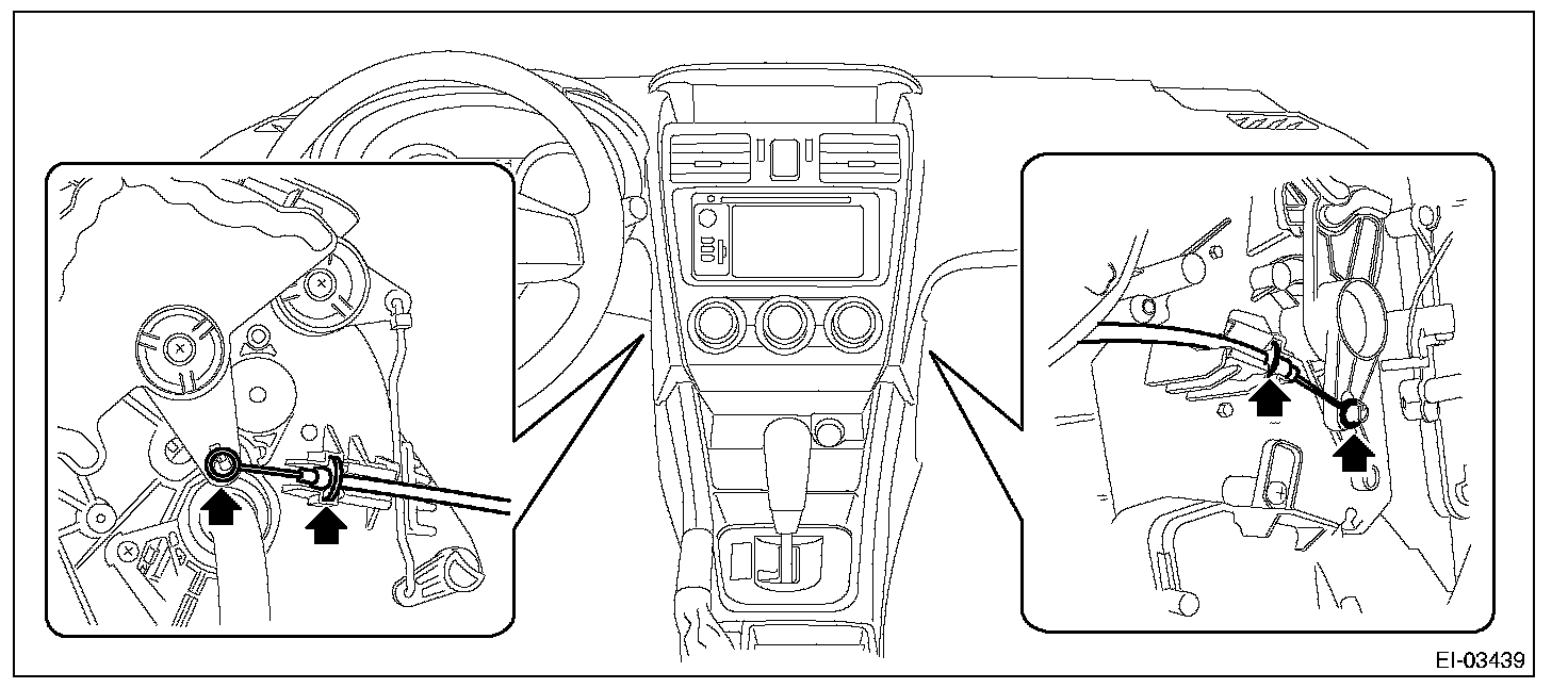 2. On manual A/C models, disconnect the control cables from both sides of the heater and cooling unit assembly.