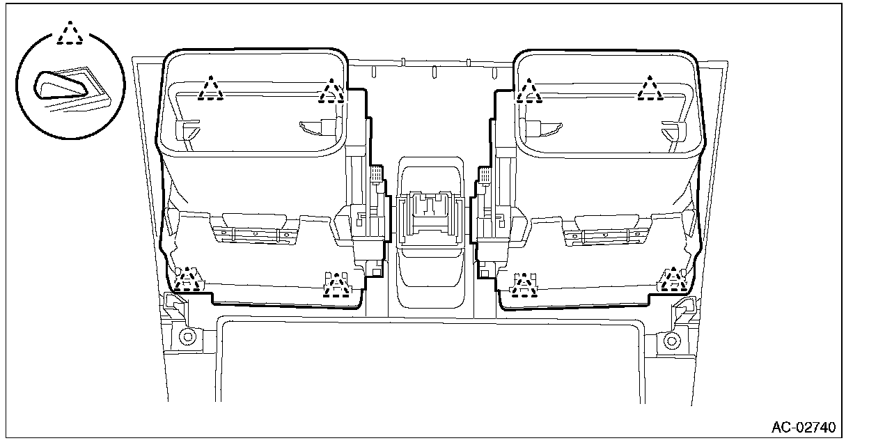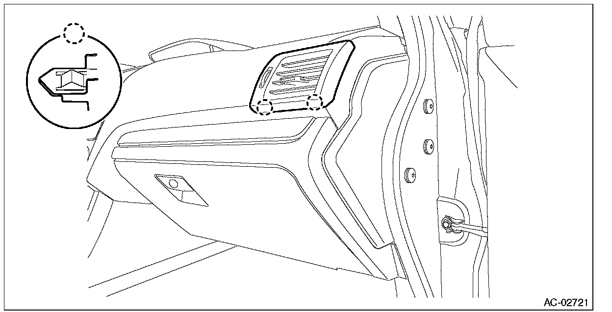 CAUTION: After installing the panel center assembly or grille assembly - ventilation, check that the air vent grille is inserted correctly into the air vent duct.