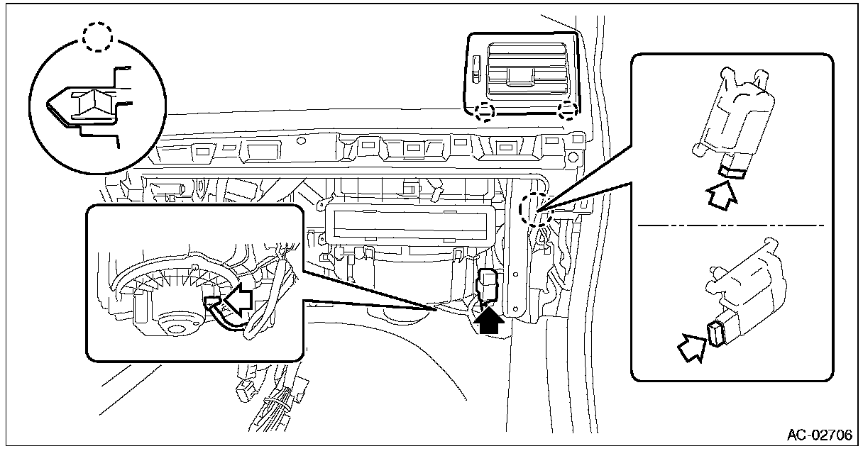 1. Release the claws, and then remove the grille assembly - ventilation RH.