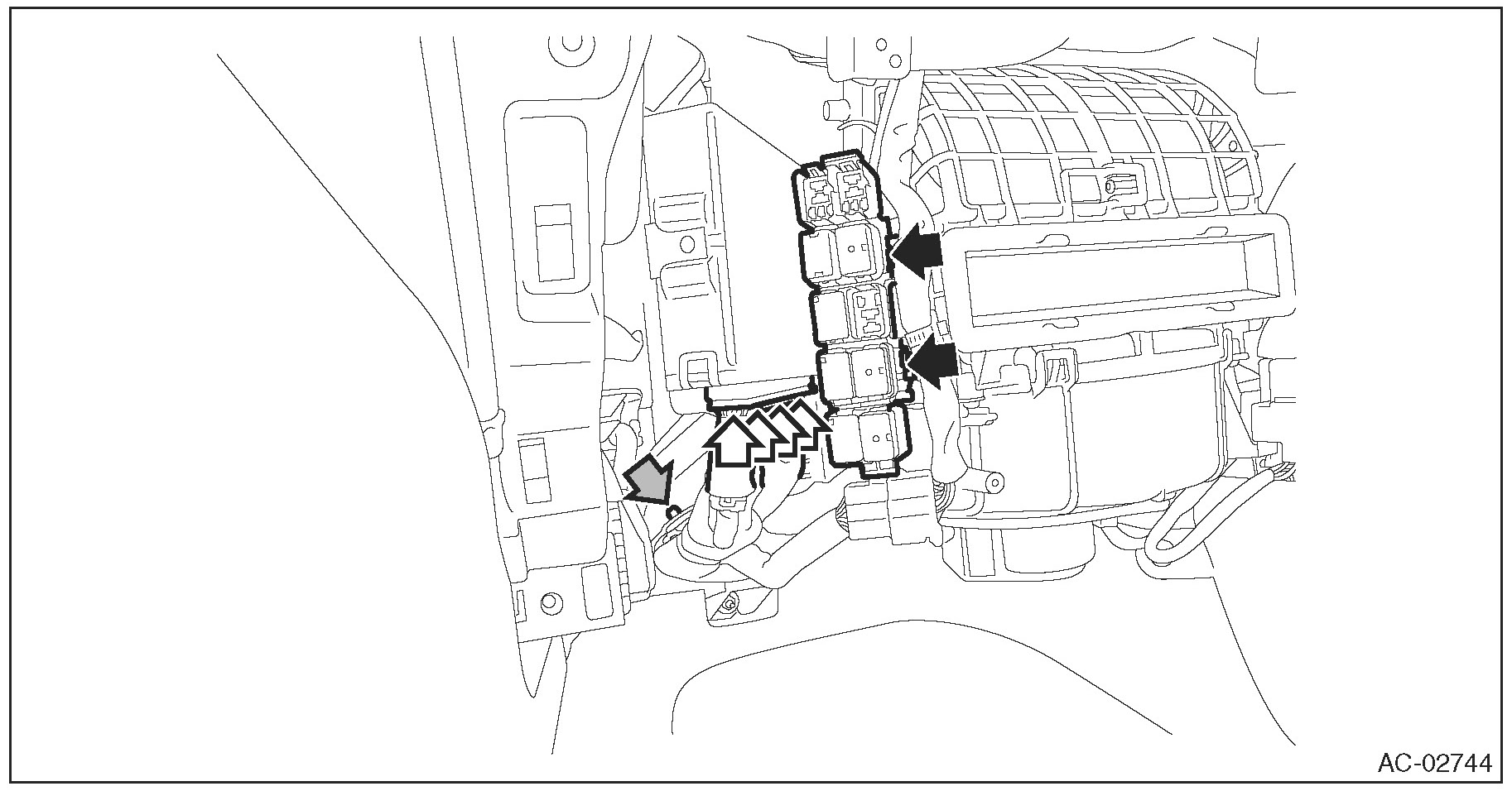2. Disconnect the blower motor relay and each connector.