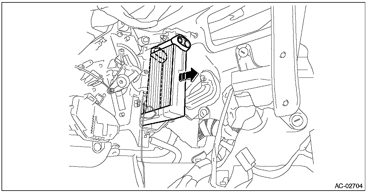 4. Remove the bolt, and detach the pipe - evaporator core.