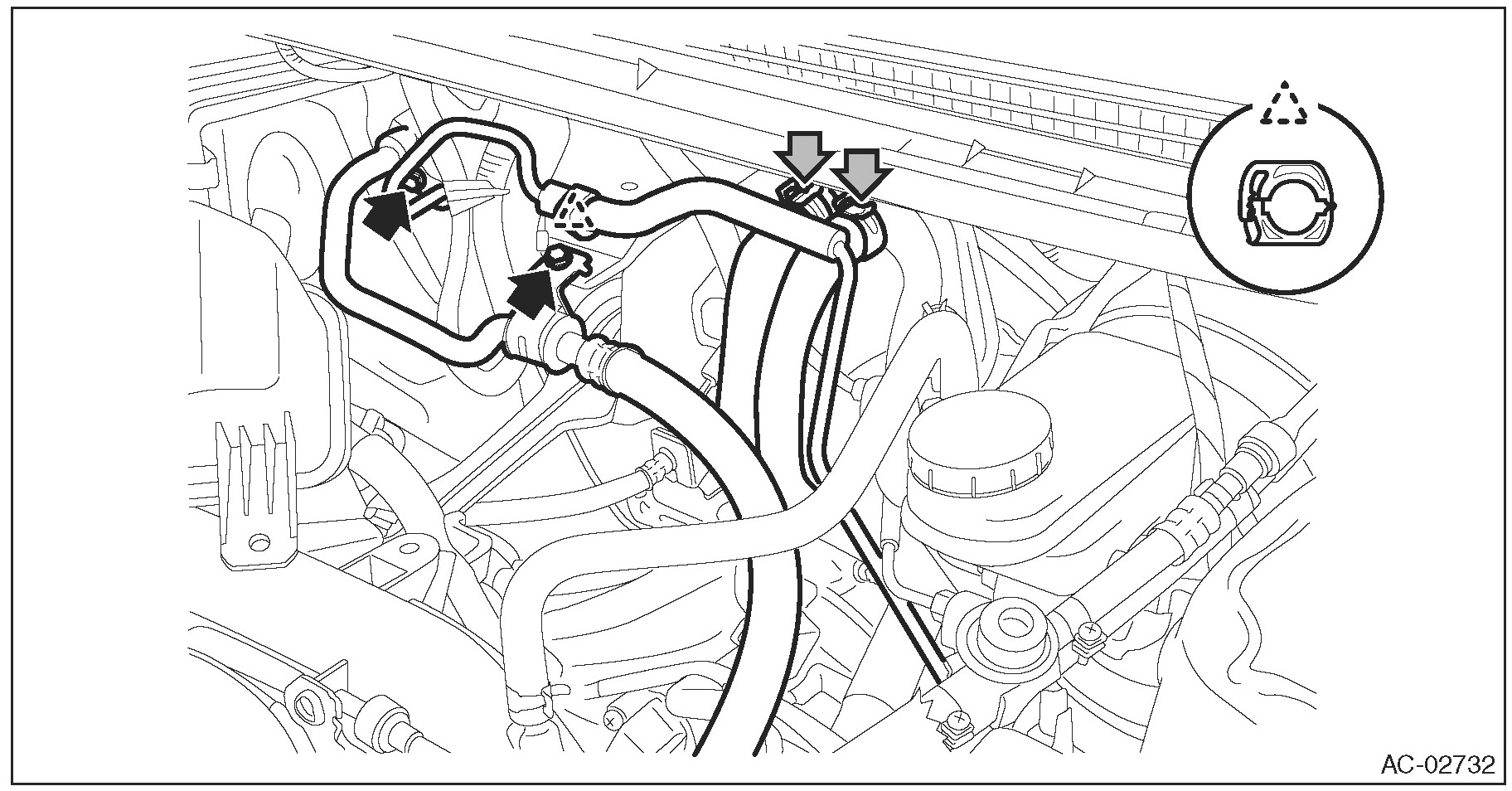 5. Remove the bolt, and remove the hose - pressure suction and the pipe - evaporator cooling from the expansion valve - cooling.