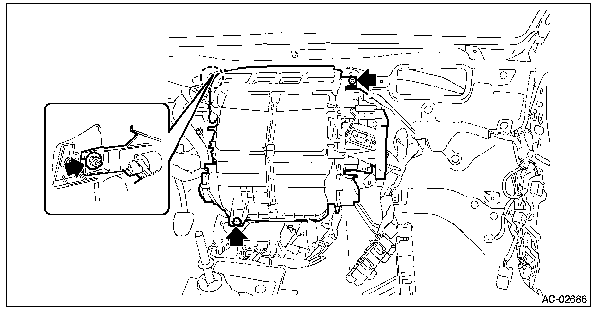 2. Remove the bolt and nuts, and remove the heater & cooling unit assembly.