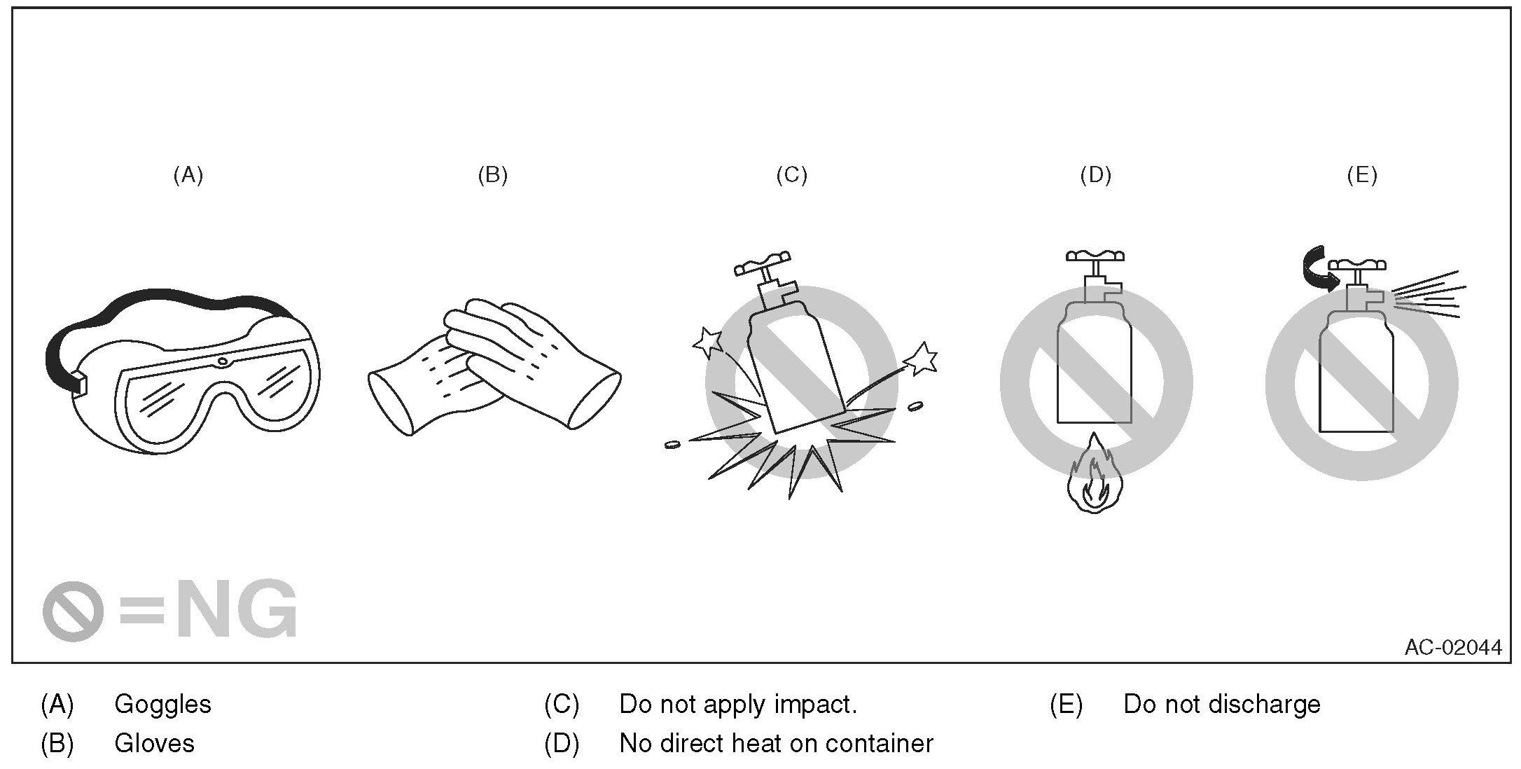 - When the engine is running, do not open the high-pressure valve of manifold gauge. The high-pressure gas will back-flow resulting in an explosion of the can.