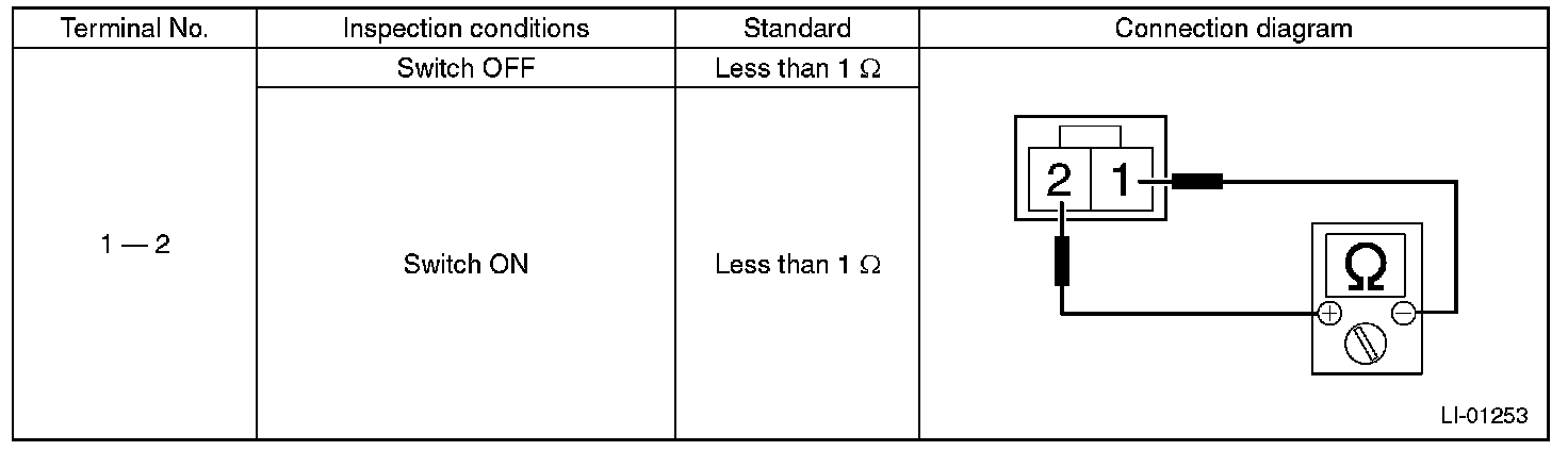 1. Check the resistance between switch terminals.