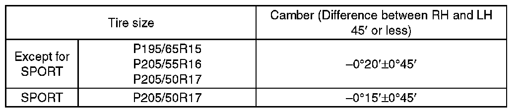 1) Adjust the camber angle to the following value.