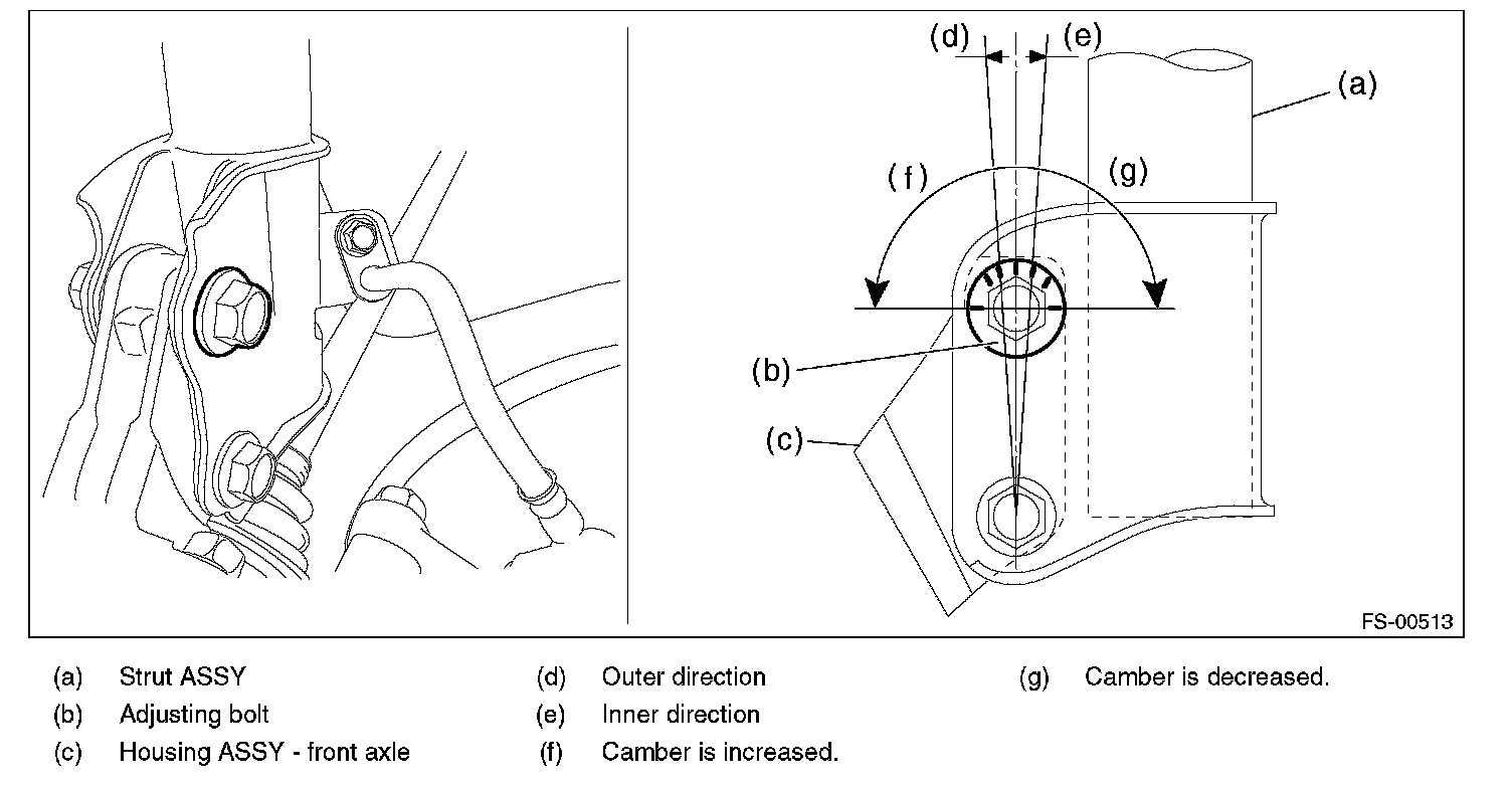 3) Turn the camber adjusting bolt so that the camber is set at specification.