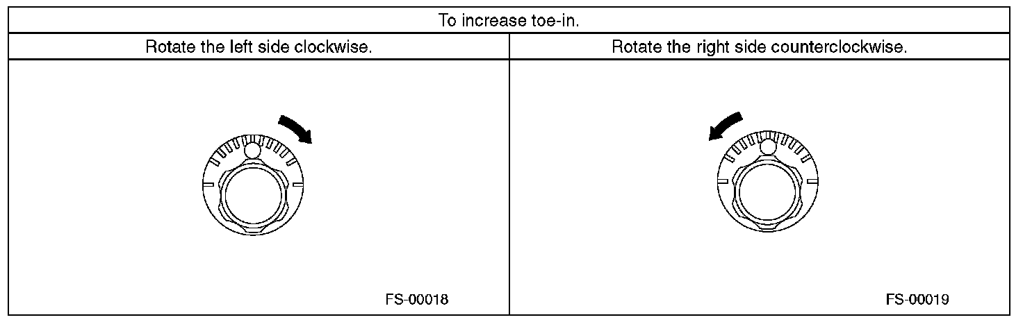 2) When one rear wheel is adjusted in a toe-in direction, adjust the other rear wheel equally in toe-out direction, in order to make the thrust angle adjustment.