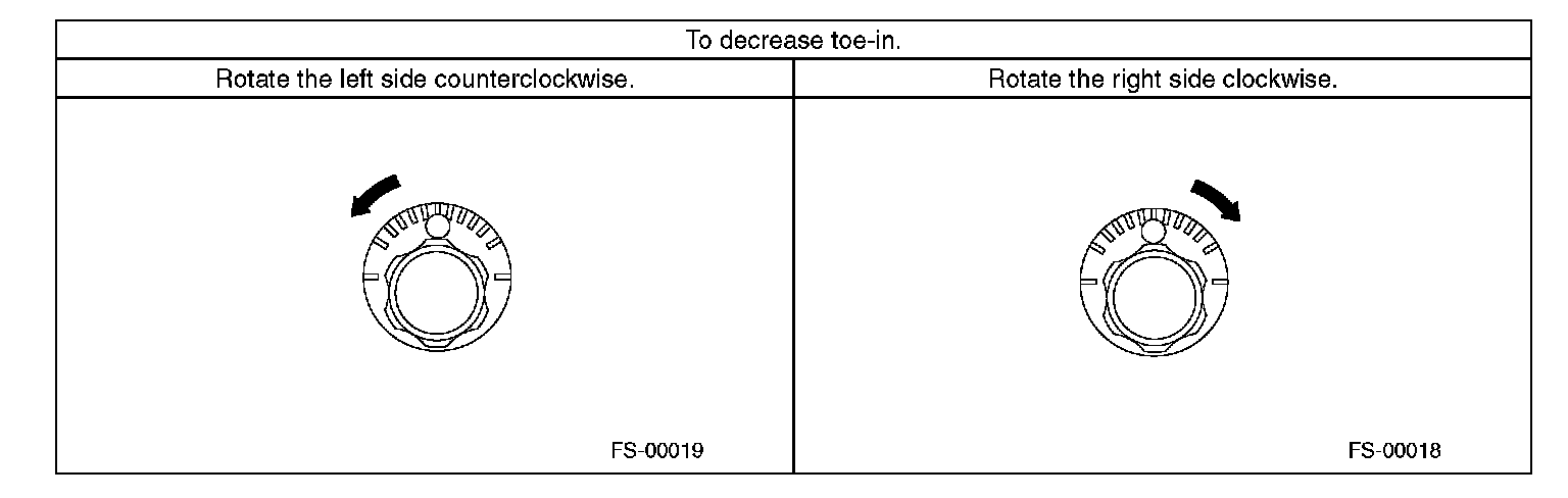 3) Turn the left and right tie-rods by equal amounts until the toe-in is at the specification.