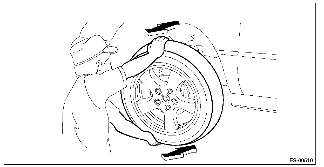 Check that there is no play by moving the upper and lower portions of front tire in an axial direction with the brake pedal released.