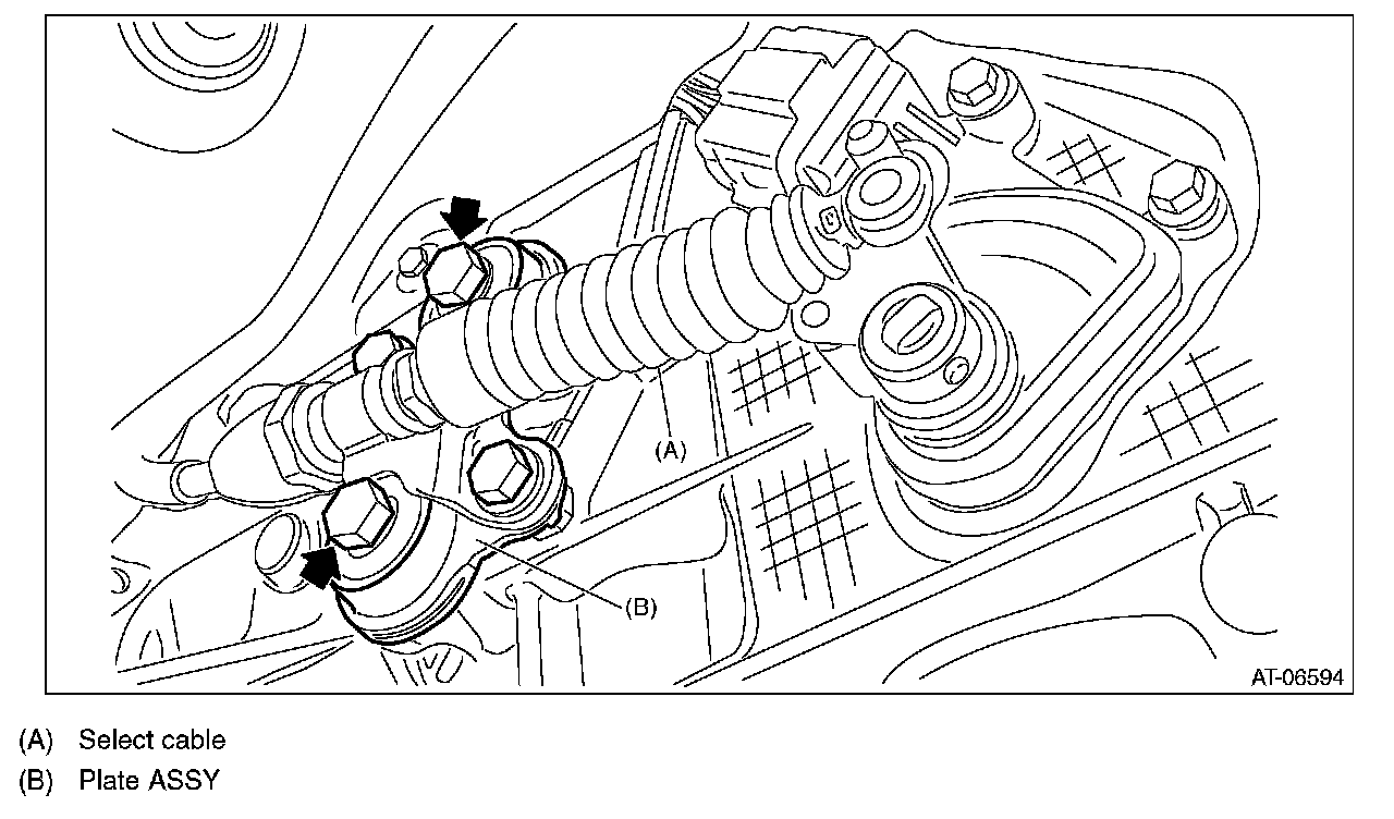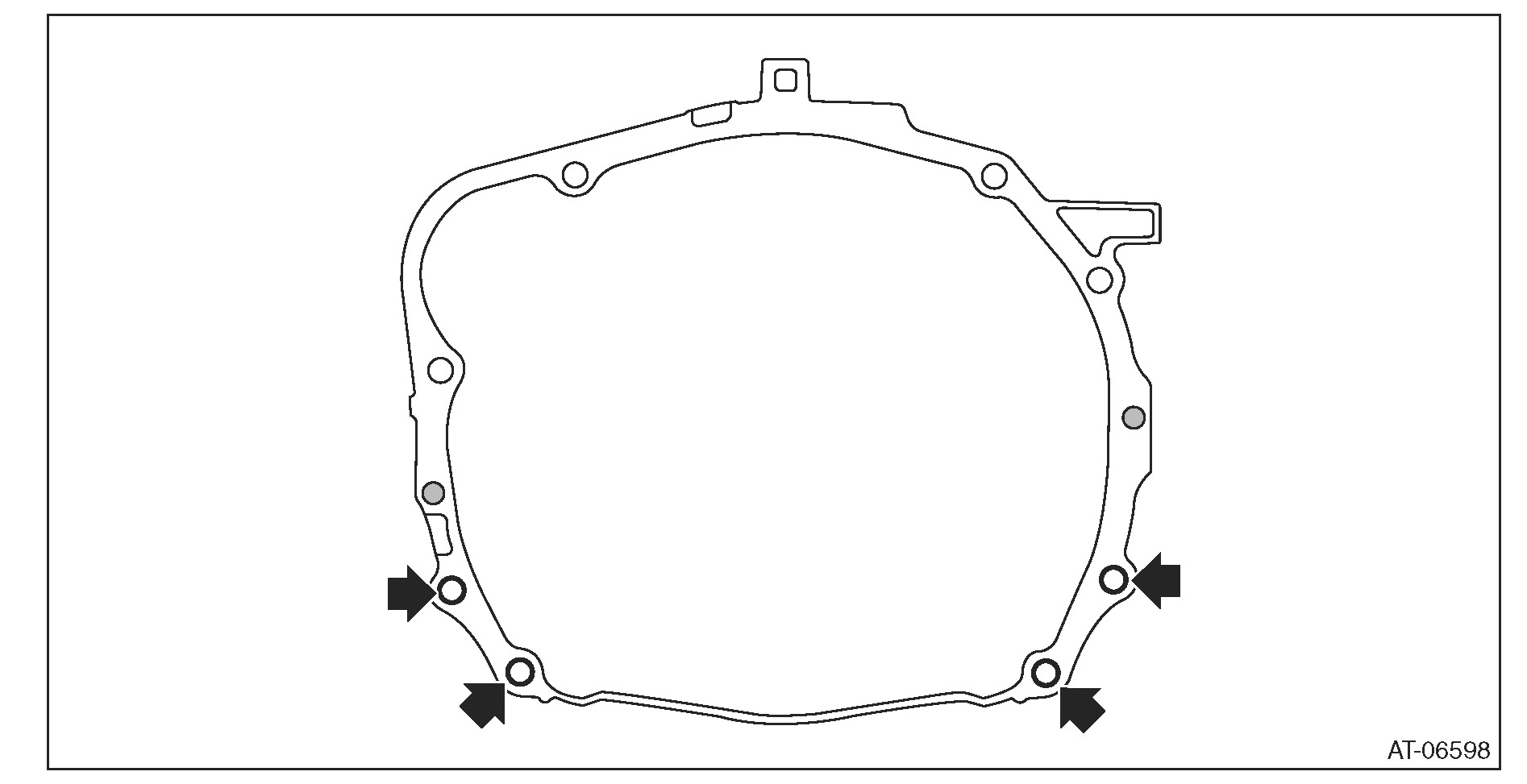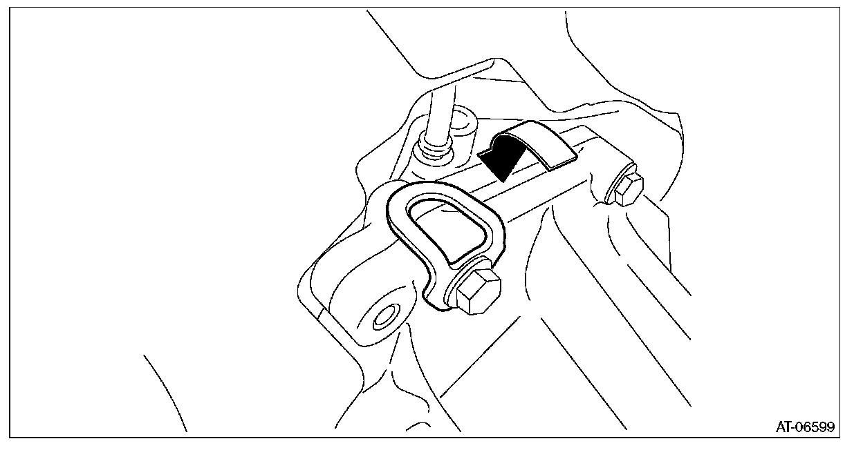 6) Strike and bend the transmission hanger of transmission rear with a rubber hammer etc. so that it gets in contact with the transmission case.