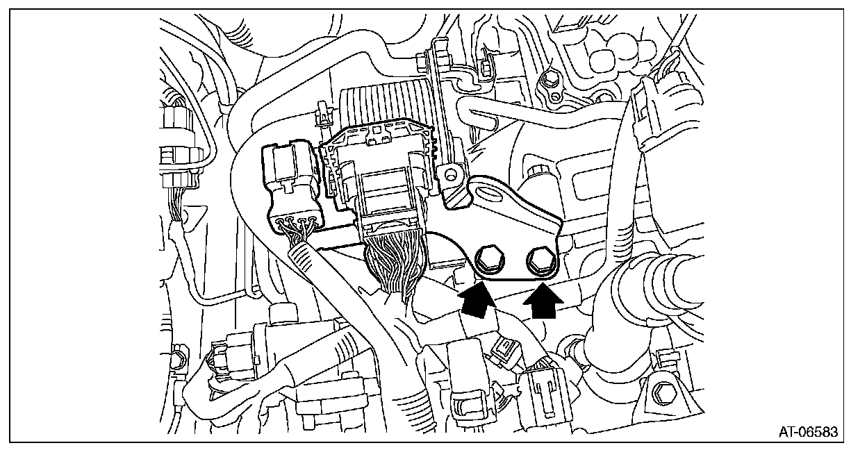 10) Tighten the two engine connecting bolts and two nuts (lower side).