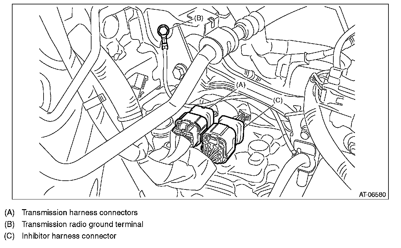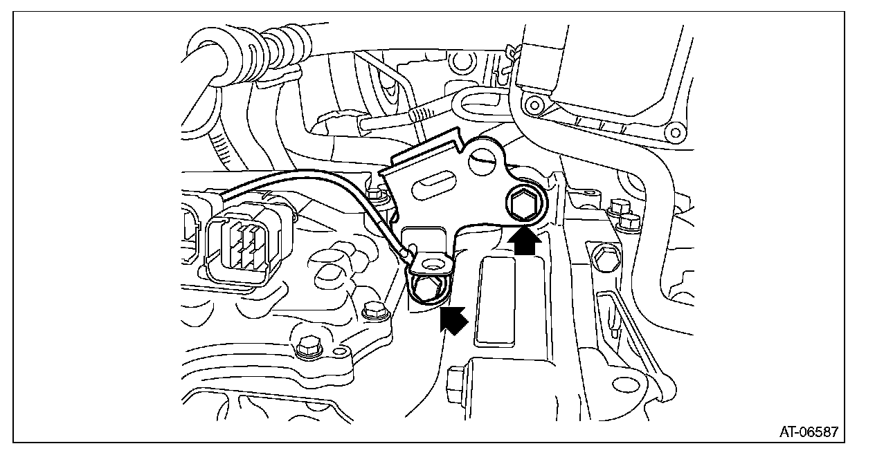 25) Install the pitching stopper bracket and transmission radio ground cord.