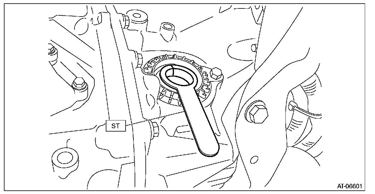 33) Insert the front drive shaft spline section into transmission and remove the ST (OIL SEAL PROTECTOR).