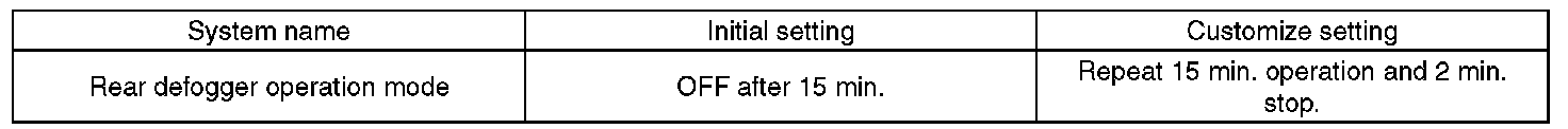 CAUTION: Check whether the Rr Defogger op. mode setting is in initial setting or customize setting before performing inspection.
