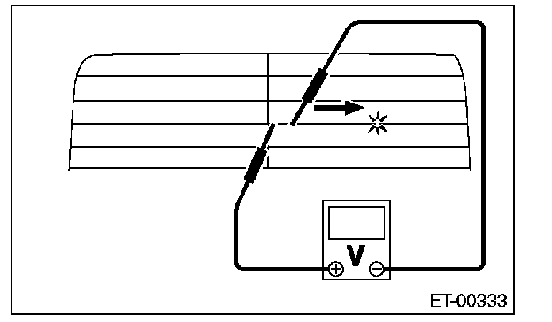 8. Move the tester probe on the negative (-) side slowly along the heat wire. If voltage changes from zero while moving the tester probe, heat wire is open at the voltage change point.
