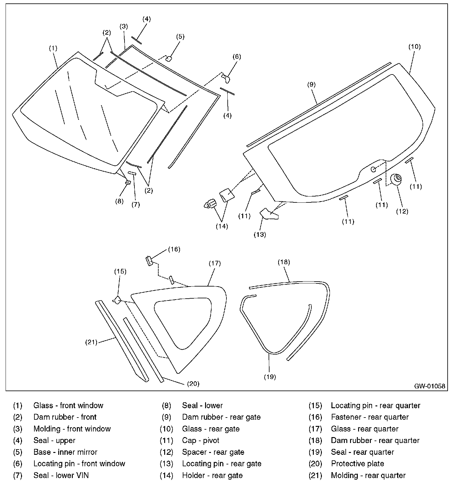 - When opening/closing the door after the glass - rear quarter was bonded, always lower the glass assembly - door first, and then open/close it carefully.