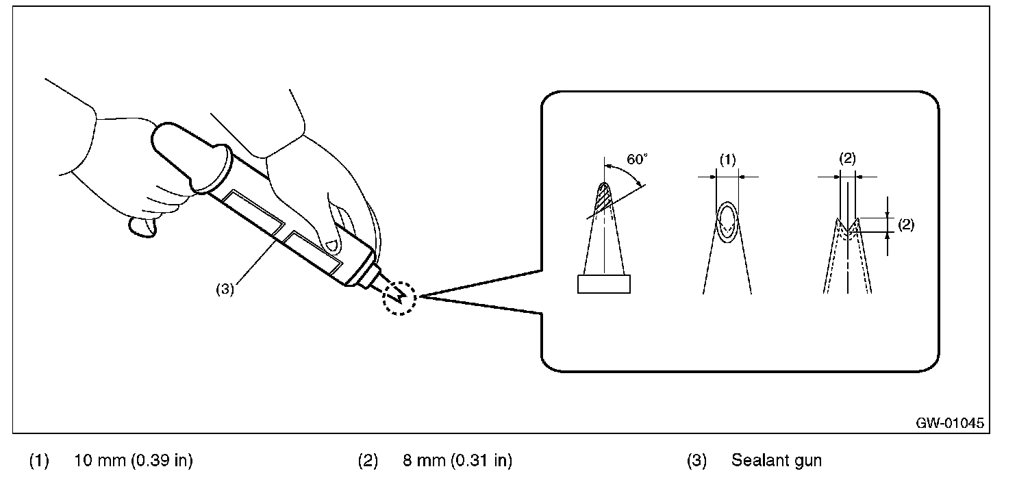 1. Fabricate the cartridge nozzle tip as shown and set the sealant gun with the adhesive.