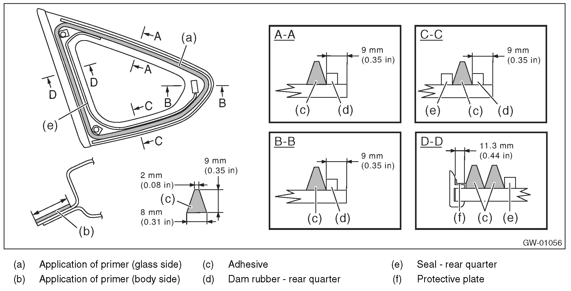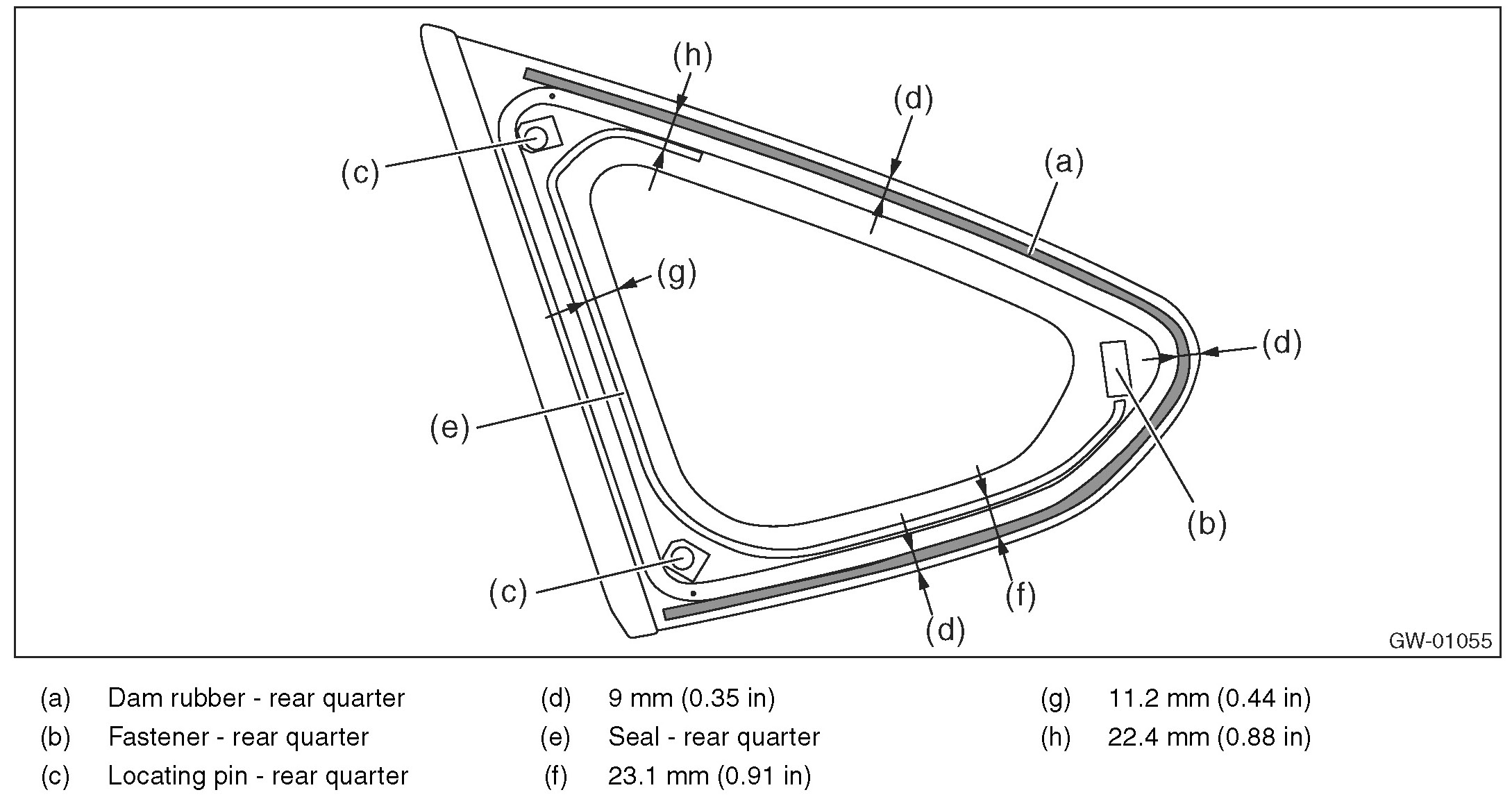4. Install the glass - rear quarter in the same procedure as for the glass - front window.
