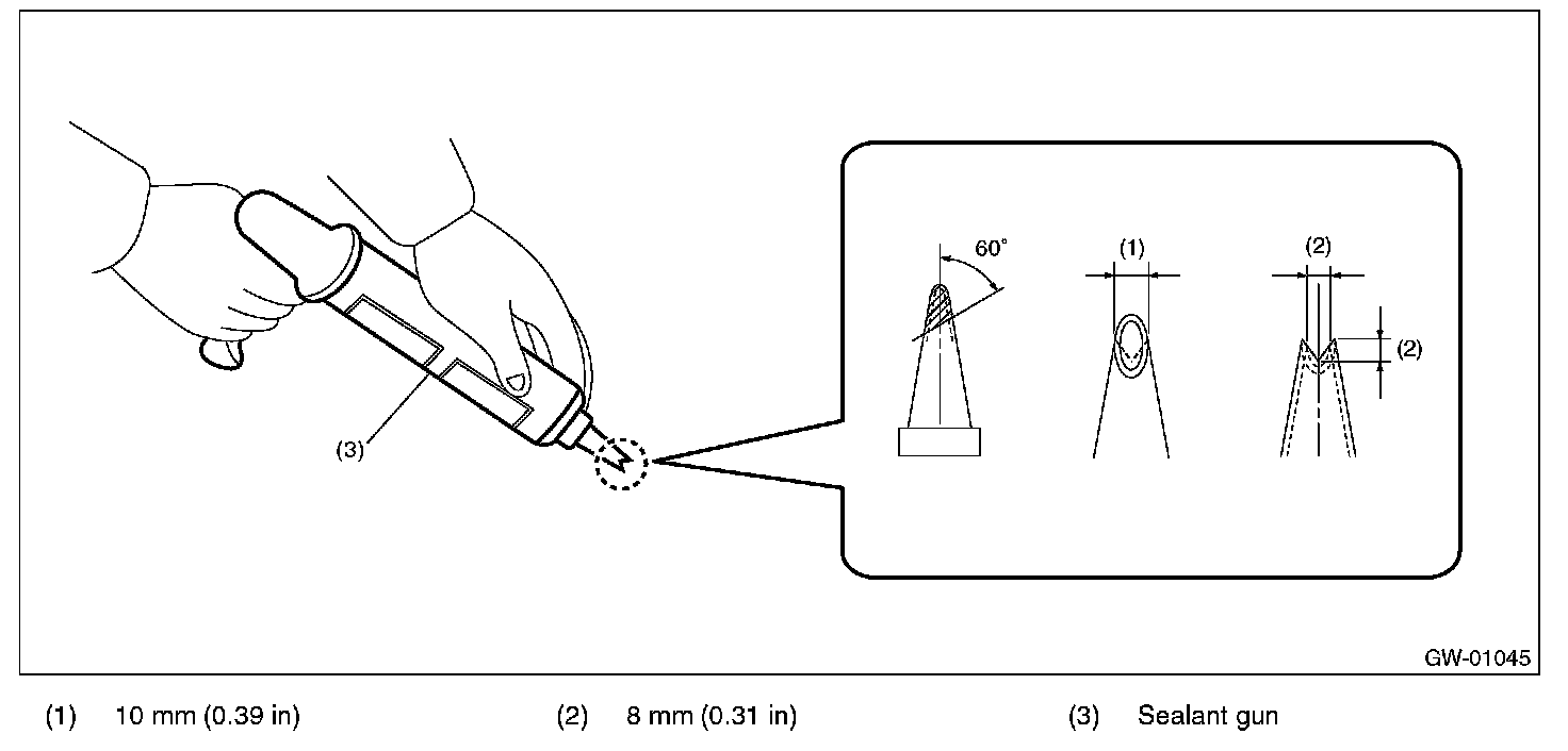 1. Fabricate the cartridge nozzle tip as shown and set the sealant gun with the adhesive.