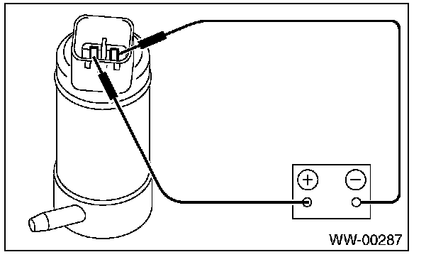 Apply battery voltage to the connector terminal of the motor pump assembly - washer, and make sure that the motor operates.