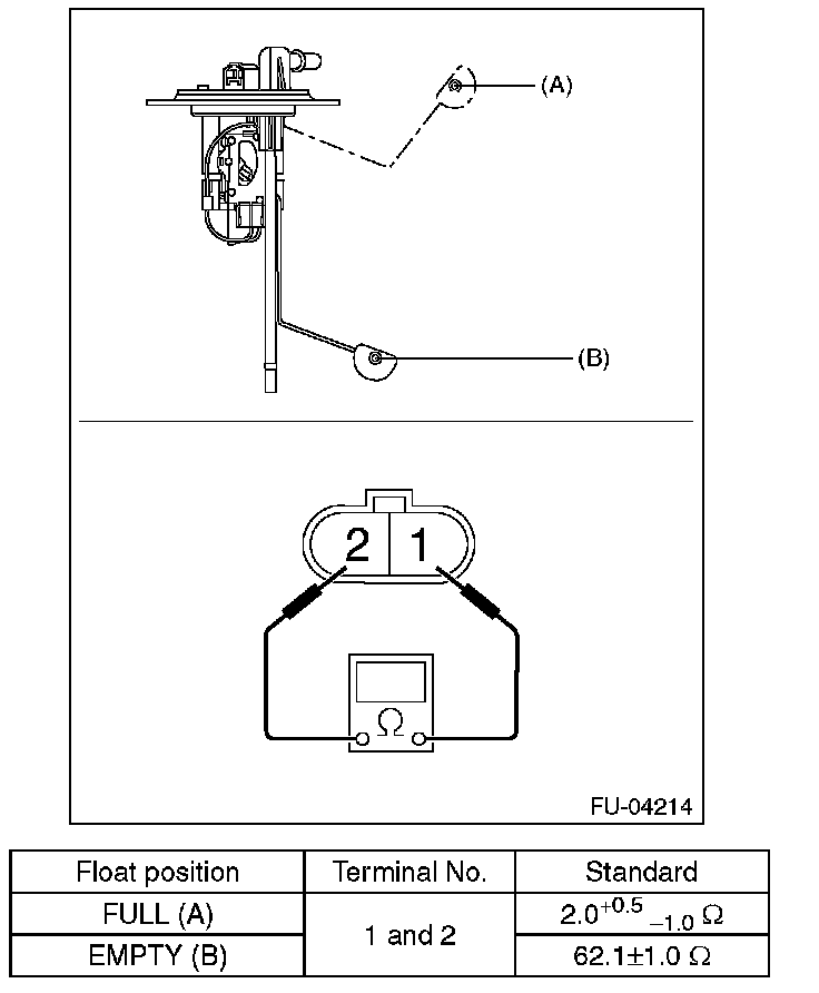 Measure the resistance between fuel sub level sensor terminals.