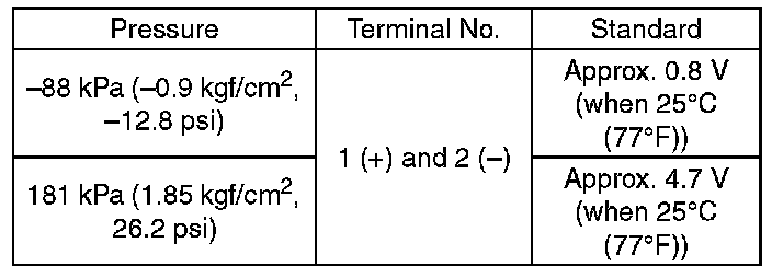 NOTE: When vacuum occurs at the pressure port of manifold absolute pressure sensor, the voltage will drop from the value as in step 3). When positive pressure occurs, on the other hand, the voltage will rise.
