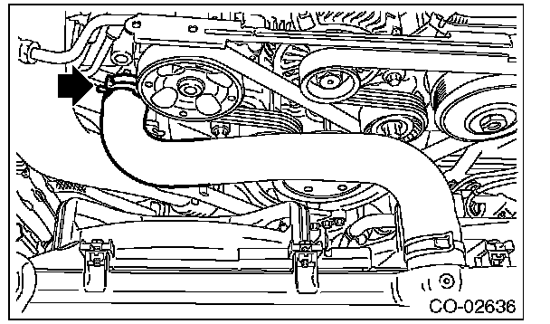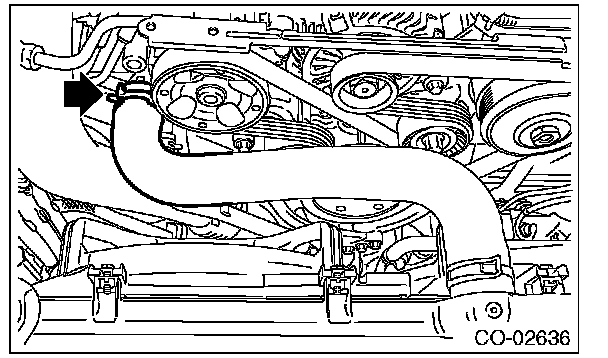 6) Disconnect the radiator outlet hose from thermostat cover.