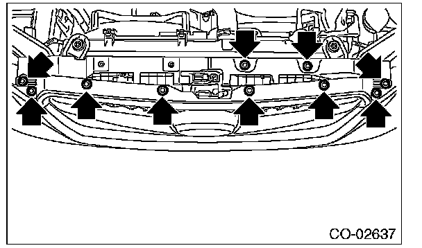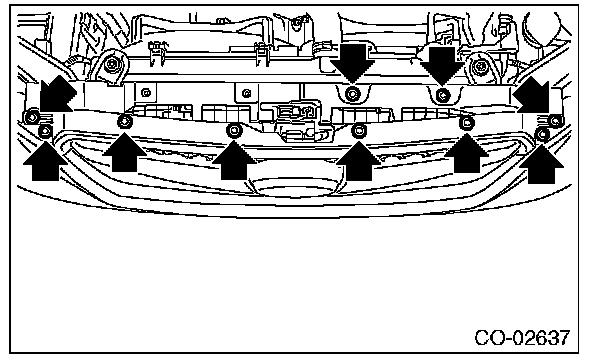 Remove ten clips when removing the grille bracket.