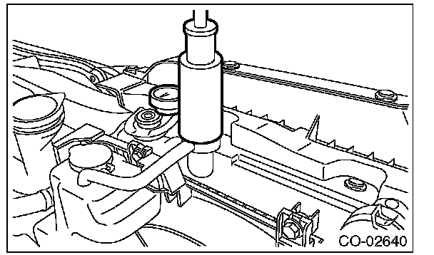 3) Remove the radiator cap, fill the radiator with engine coolant, and then install the radiator cap tester to the filler neck of radiator.