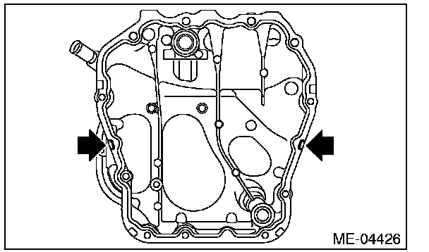 ^ Before installing the oil pan, clean the mating surface of oil pan and cylinder block.