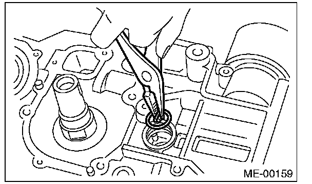 ^ Press the crankshaft bearing at the end opposite to locking lip to remove.