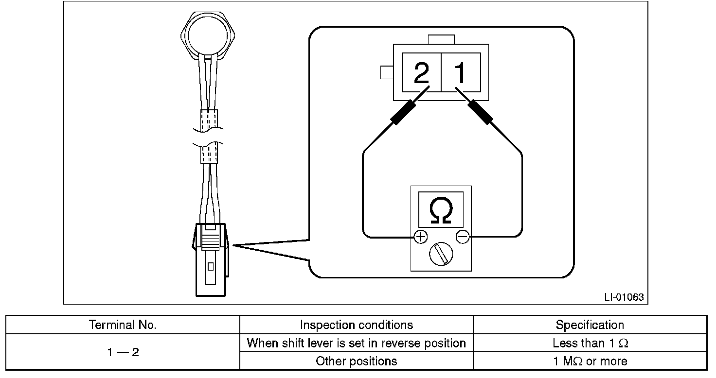 3. Replace the back-up light switch if the inspection result is not within the standard value.
