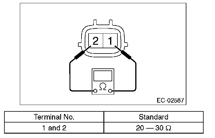2. Check the resistance between the pressure control solenoid valve assembly terminals.