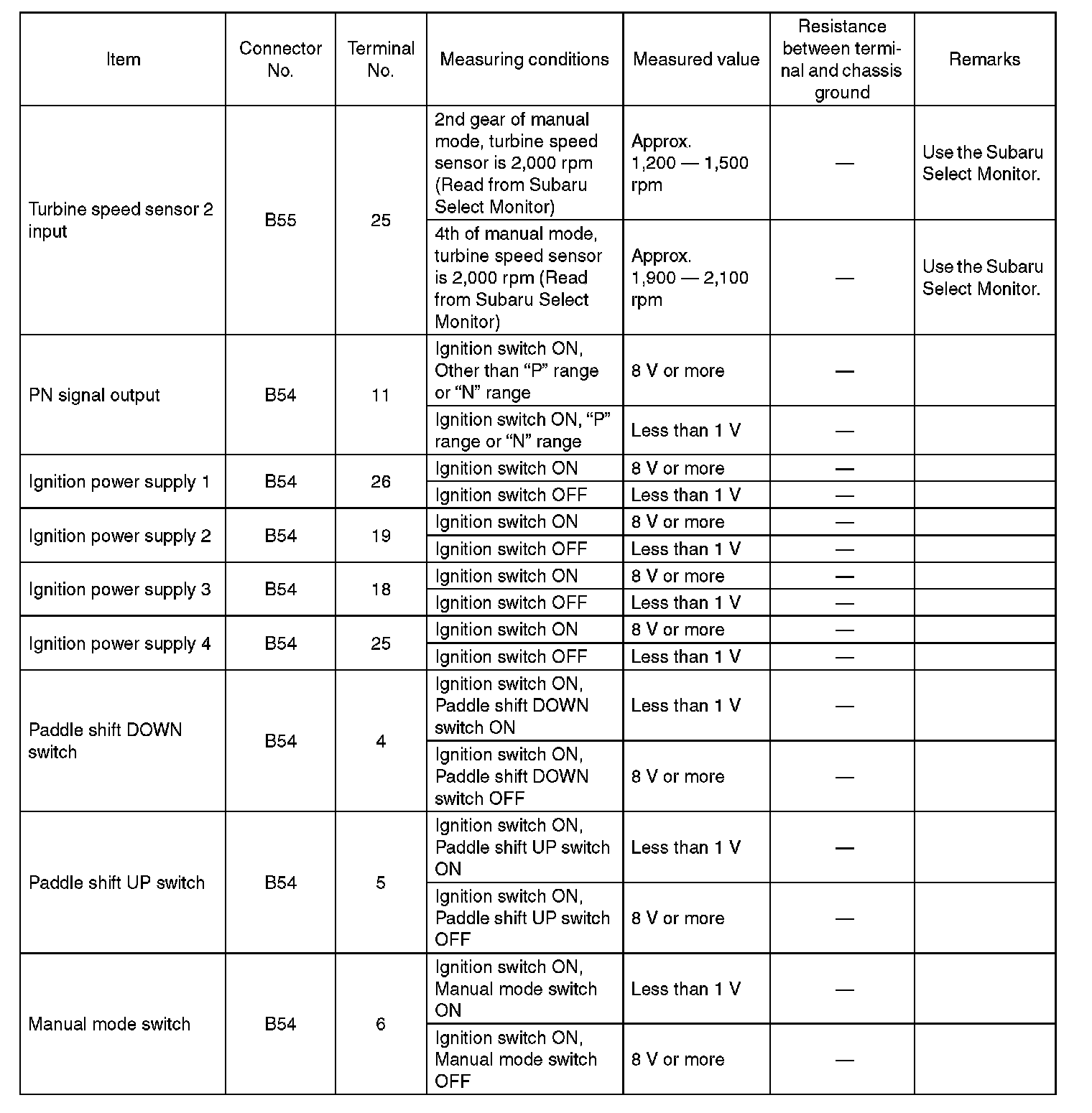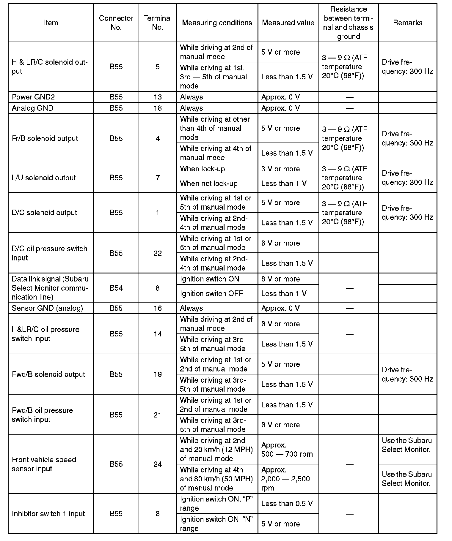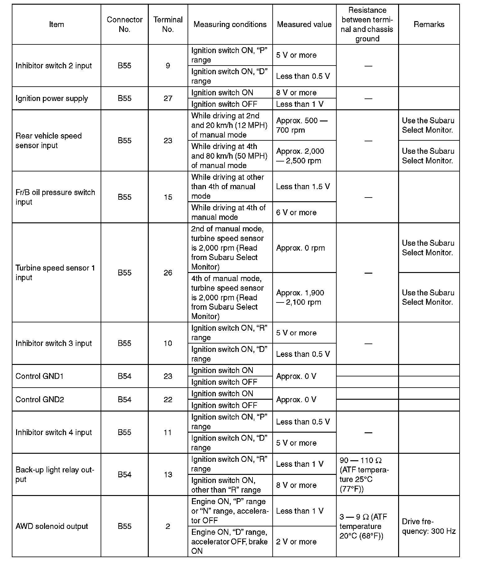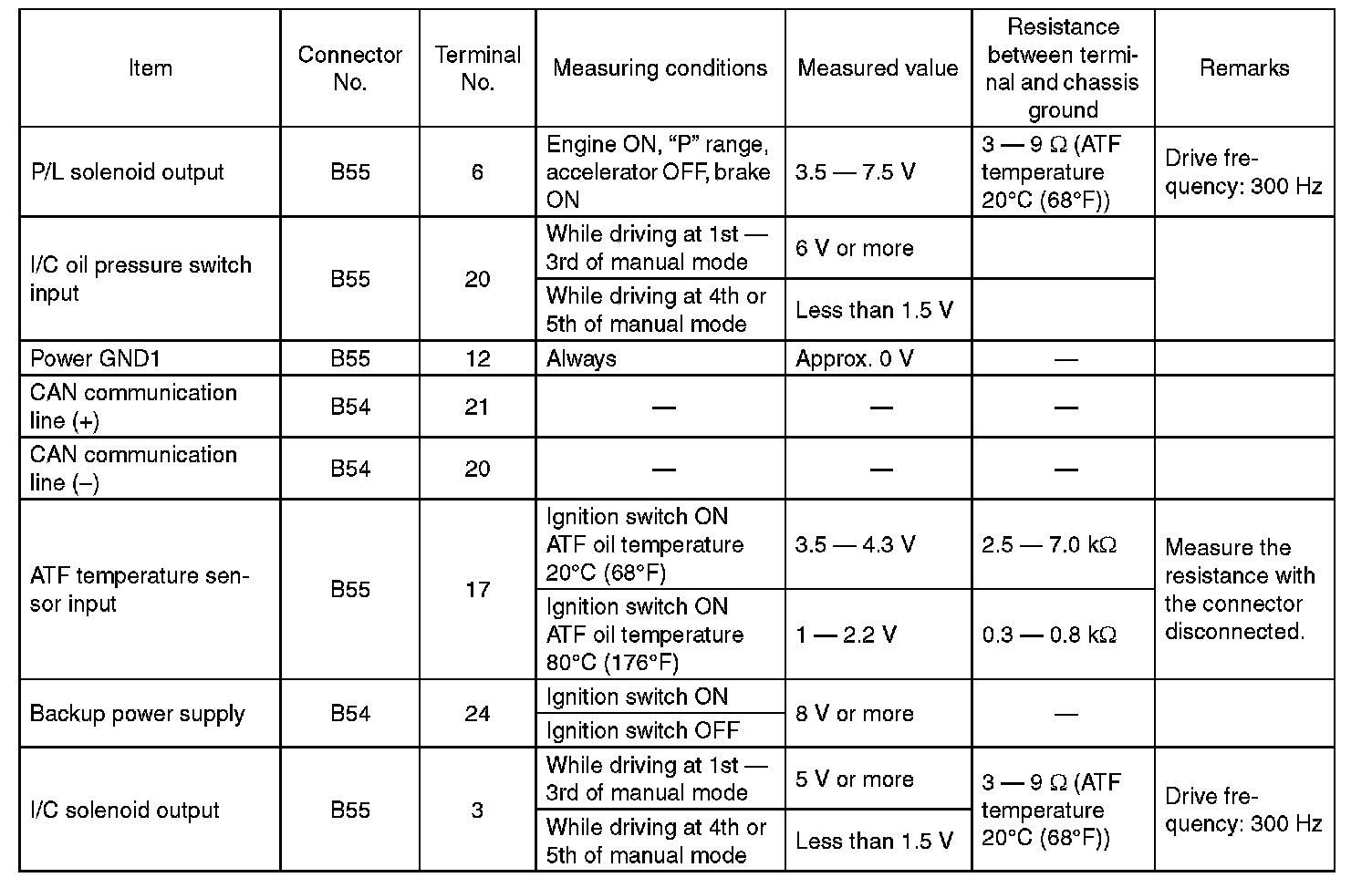 Transmission Control Module (TCM) I/O Signal