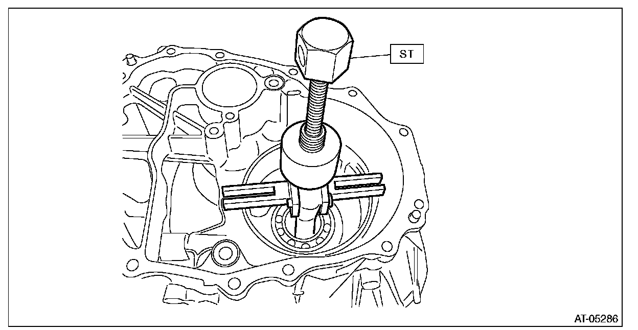 7) Using the ST, remove the roller bearing on primary pulley side.