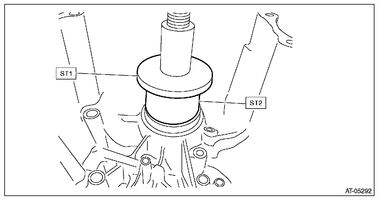 5) Using ST1 and ST2, install the roller bearing on secondary pulley side.