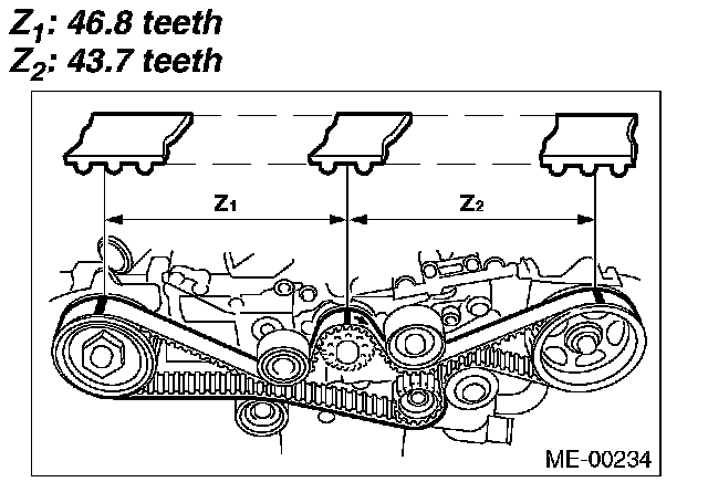 1) Check the timing belt teeth for breaks, cracks or wear. If any fault is found, replace the timing belt.