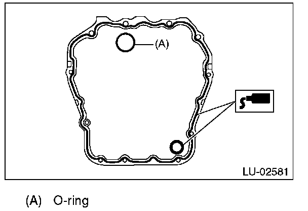 ^ Before installing the oil pan, clean the mating surface of oil pan and cylinder block.