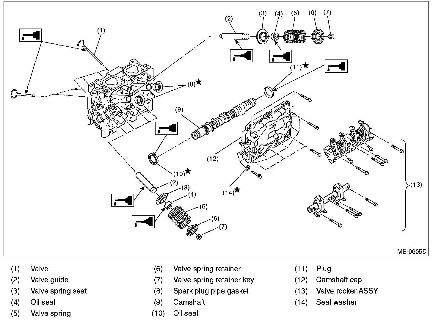 ^ Pay careful attention not to damage the lips of intake valve oil seals and exhaust valve oil seals.