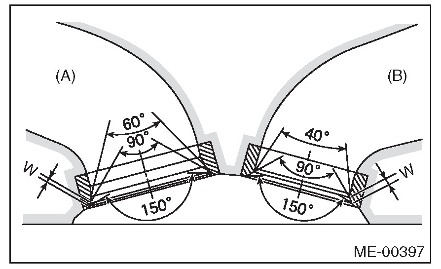 Inspect the intake and exhaust valve seats, and correct the contact surfaces with a valve seat cutter if they are defective or when valve guides are replaced.